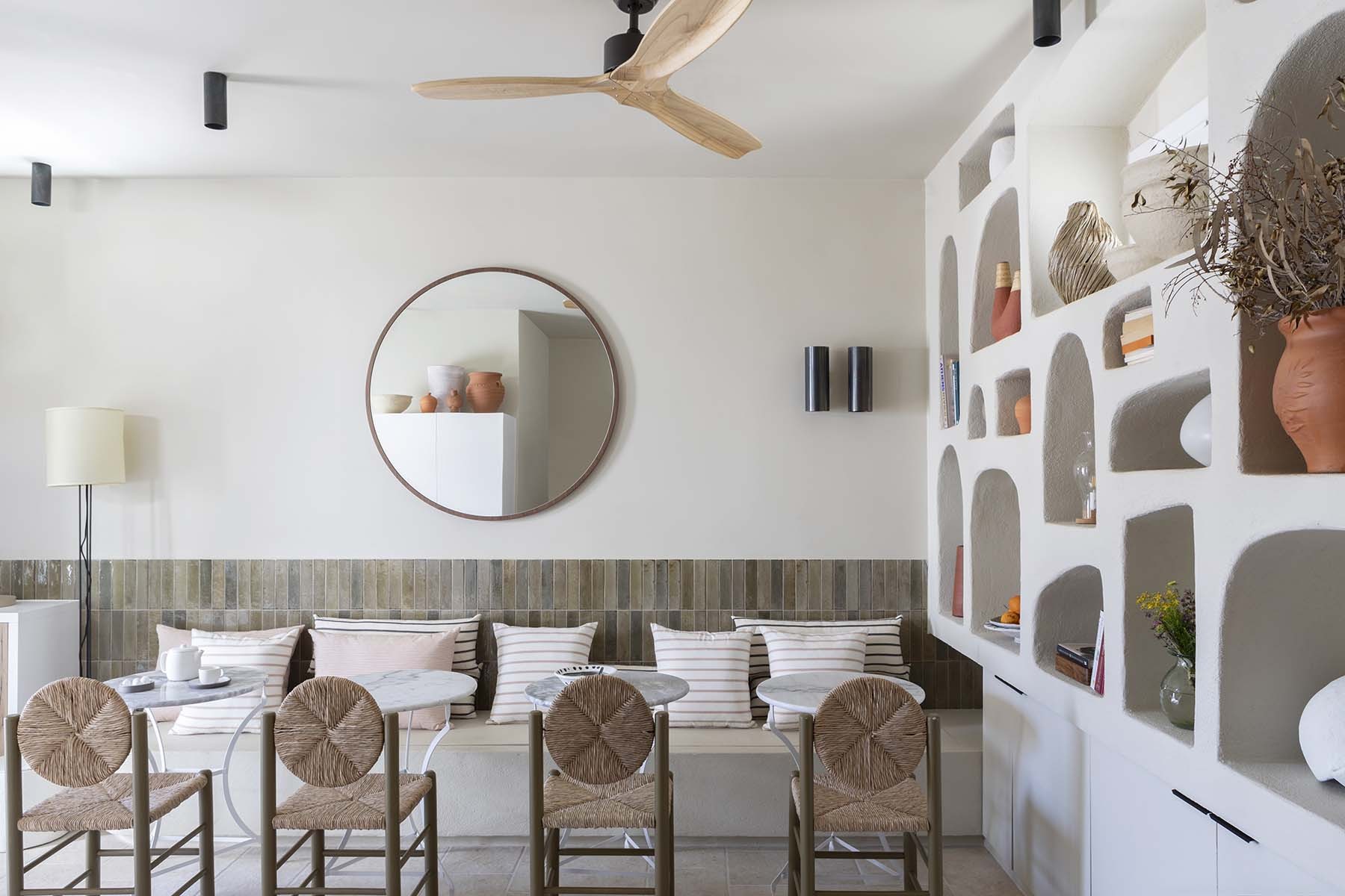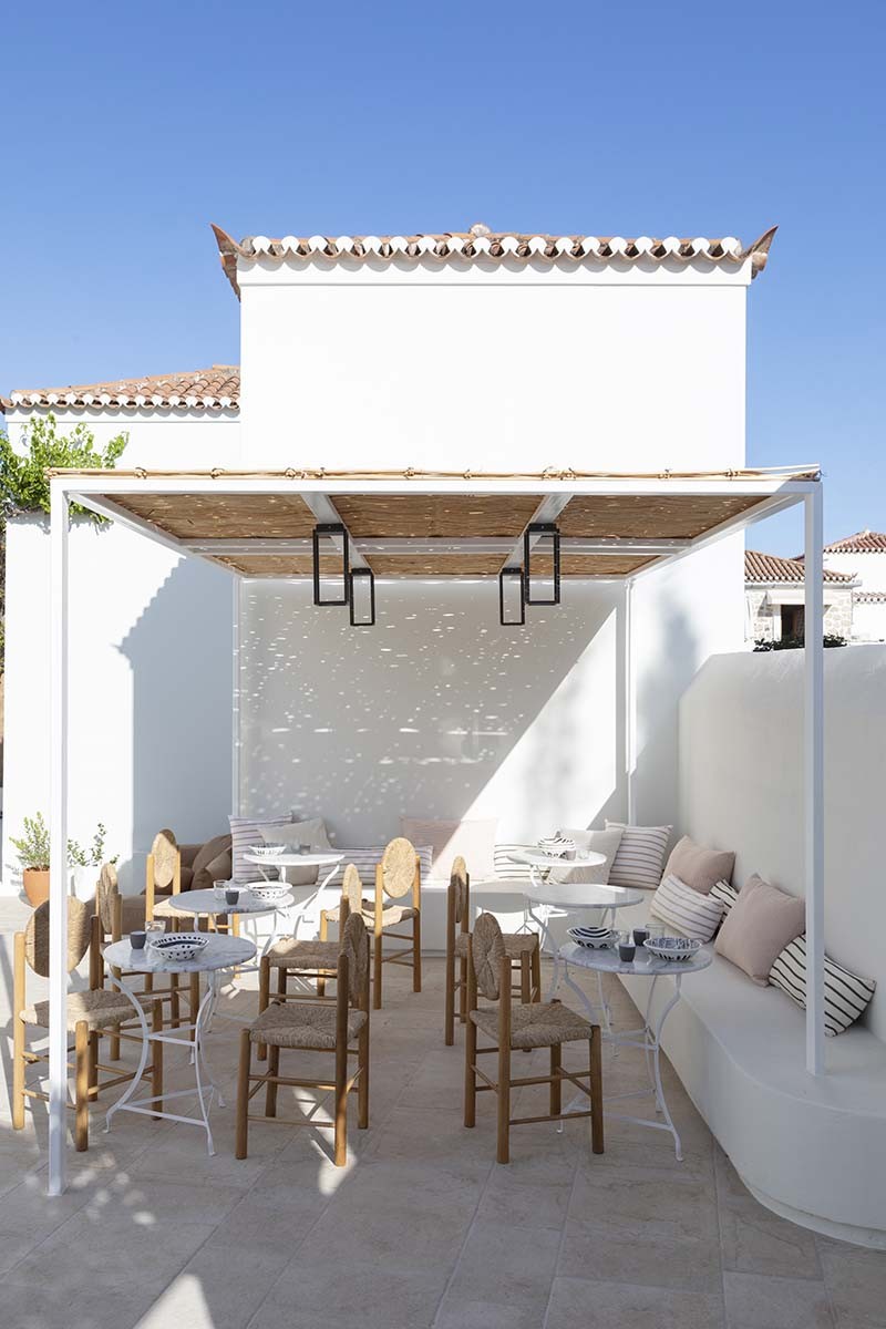 Un petit-déjeuner gourmand, healthy et avec des options vegan, créé en collaboration avec le chef Esco du restaurant The Plant Kingdom à Athènes, est servi tous les matins en extérieur tandis que de délicieuses spécialités grecques préparées avec les produits saisonniers du marché y sont concoctées tout le reste de la journée.