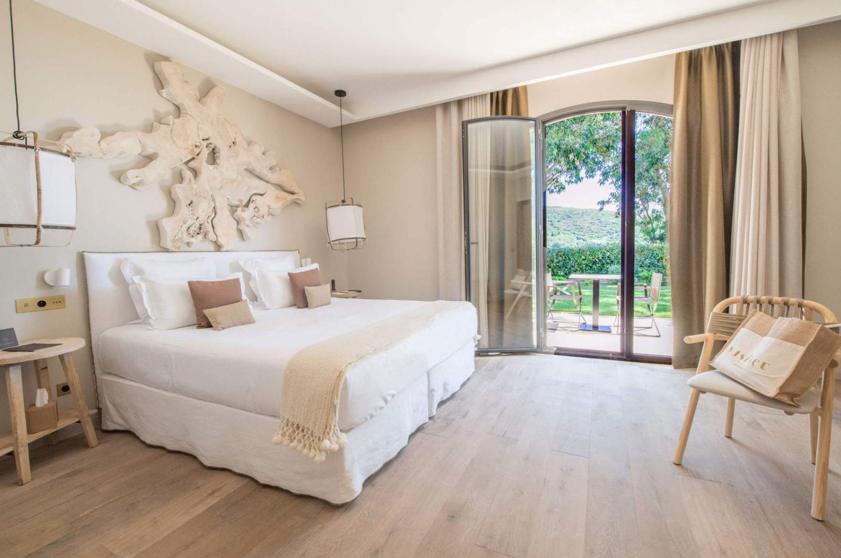 Côté chambres, les 29 suites de l’hôtel Misíncu ont un style très épuré avec une déco en bois massif, osier tressé et marbre de Sardaigne qui font écho à la nature environnante. Les matières utilisées pour la literie sont également très raffinées avec du lin, du coton, le tout sublimé par de belles tonalités claires. En outre, les balcons et terrasses orientés face à la Méditerranée sont une véritable invitation à l’évasion.