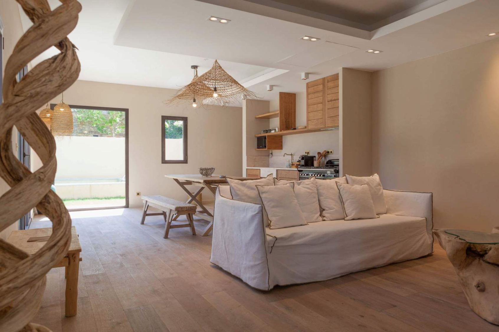 Ici, la plage est privative et accessible à pied depuis les chambres. Agrémentée de transats et draps de bain, elle a été spécialement aménagée pour vous assurer un confort optimal. Au calme, entre mer et maquis, vous pourrez ainsi profiter du soleil de L’Île de Beauté tout en faisant face au plus grand parc naturel marin de France métropolitaine.
